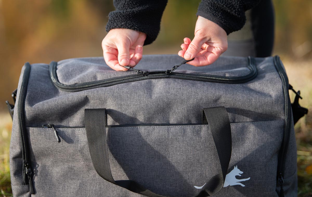 A smaller yet impressively spacious travel and training bag that’s perfect for weekend trips, competitions, training sessions, seminars or shows – whether you’re traveling with dogs or without.