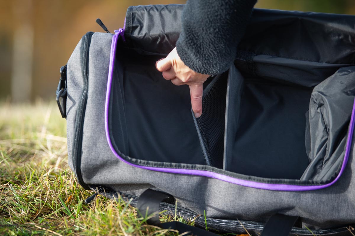 A smaller yet impressively spacious travel and training bag that’s perfect for weekend trips, competitions, training sessions, seminars or shows – whether you’re traveling with dogs or without.