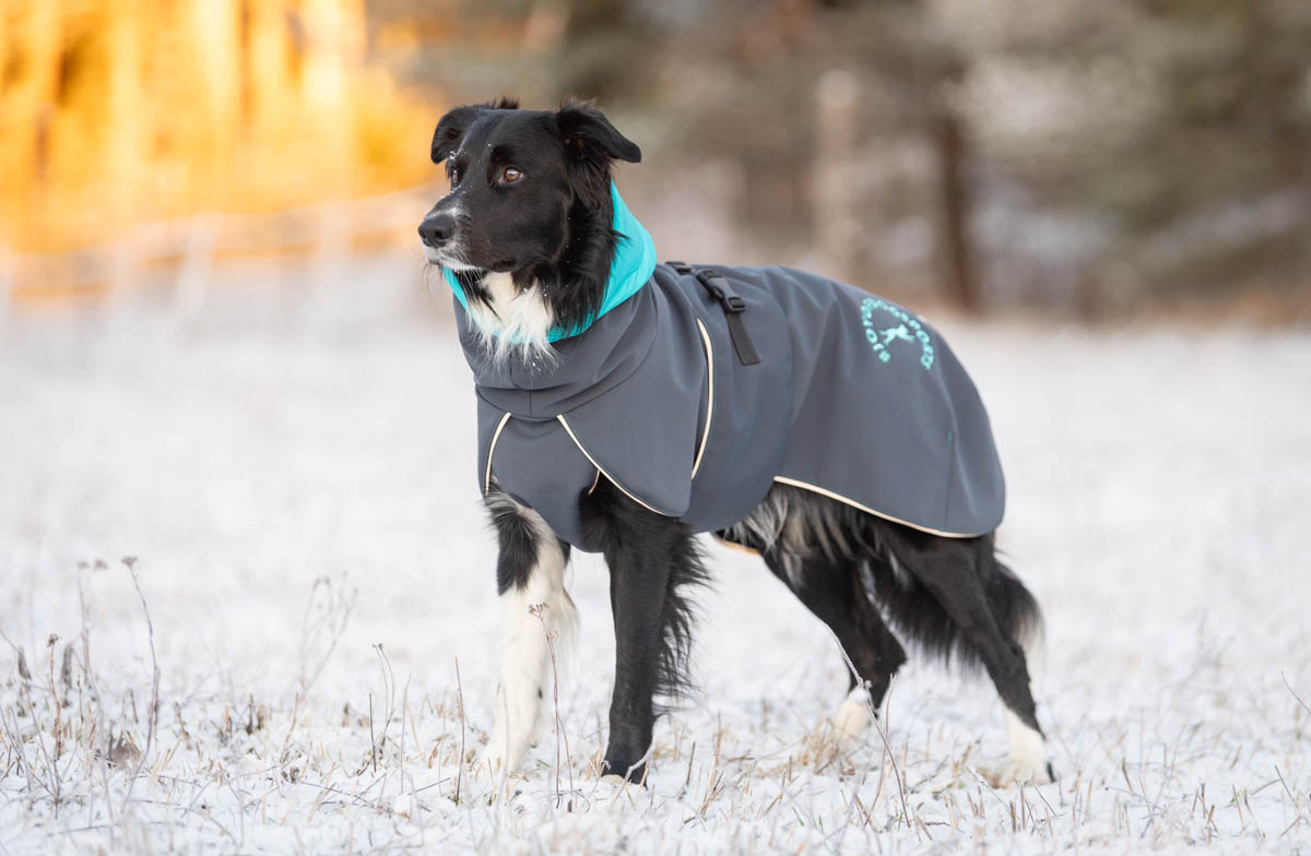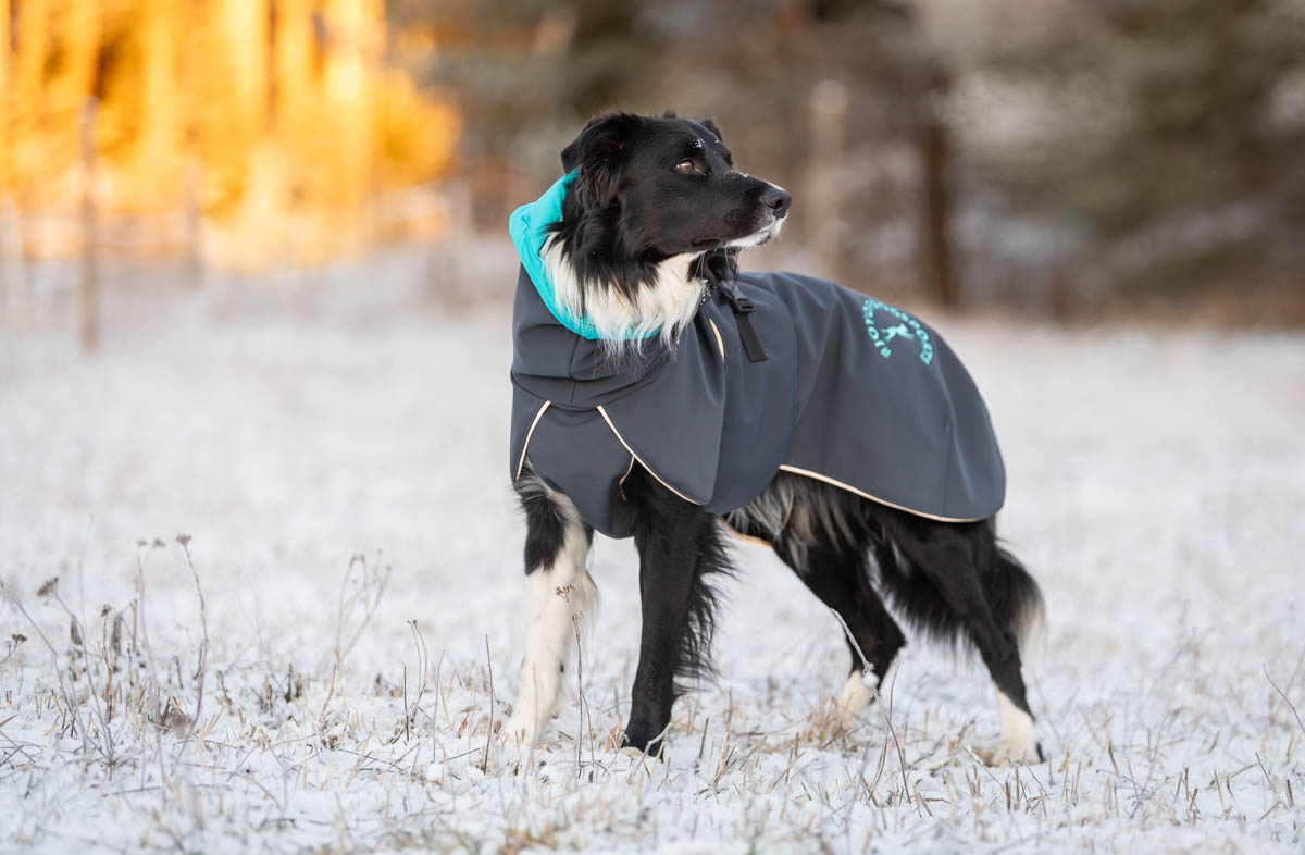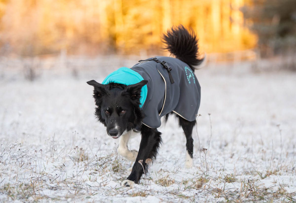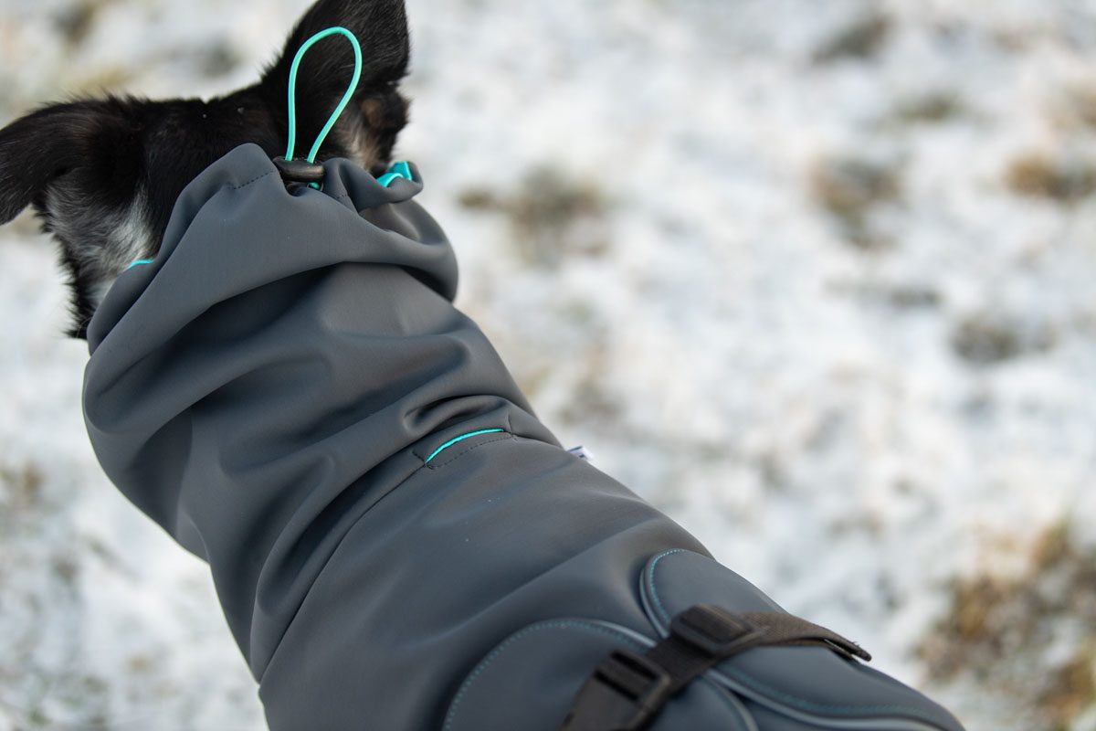 The jacket’s design is also perfect for sports: tailored to fit dogs of all shapes and sizes, covering all the big muscles and staying in place even at full speed, while still allowing complete freedom of movement. The soft materials are nice and stretchy, so your dog can move freely. The high multipurpose collar can be worn up to provide protection from rain and wind, folded down to the length of your choice or worn as a hood to keep your dog’s ears covered.