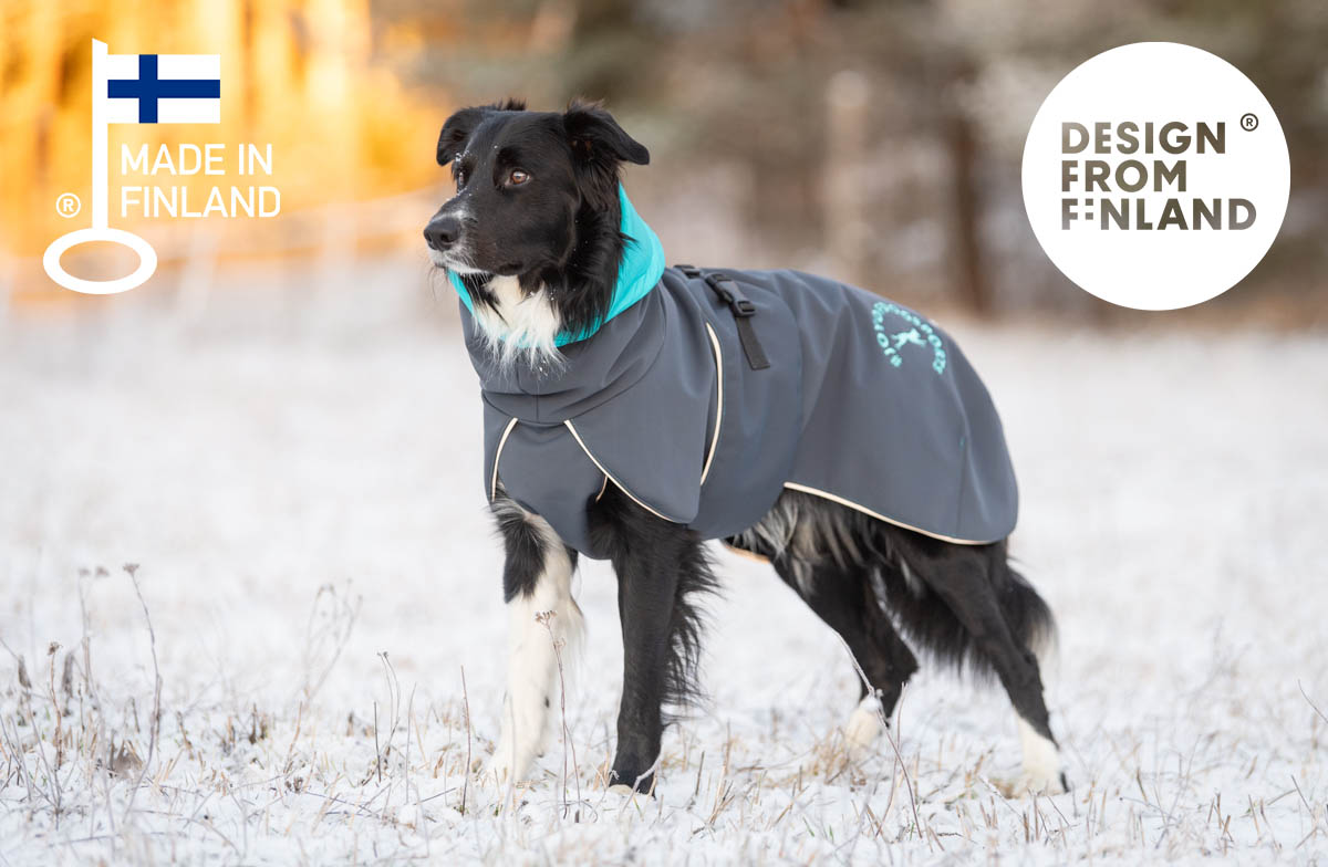 The SportWarmer dog jacket design from Joy of Dog Spots is protected, and the jacket has been awarded the Key Flag symbol and the Design from Finland mark as evidence of its Finnish manufacture, design excellence and sustainability.
