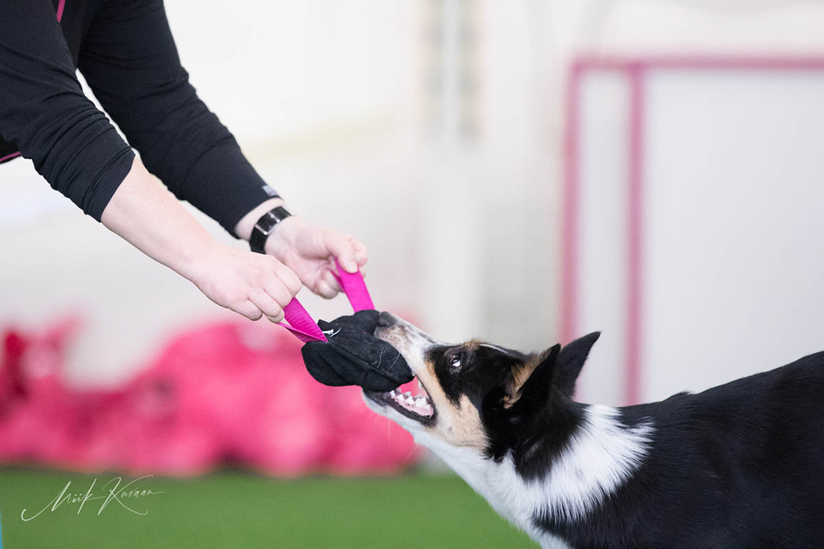 The Toughie suede tug toy, made in Finland exclusively for SportsK9, is a wonderful, soft leather tug toy in the shape of a rugby ball, perfect for playing with and training your dog. The toy is designed especially for dog sports: thanks to its premium quality, it can take even the wildest game of tug-of-war. The extremely high-quality leather is tough and thick, so it can withstand wear and tear from biting and tugging, and the handles are made from a single strip of fabric running all the way through the toy, which means they actually can’t come off.
